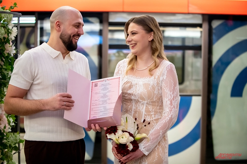 Проект мэра Москвы «Новые адреса счастья» запущен в 2019 году, с тех пор список необычных локаций для регистрации брака только растет. На БКЛ в первый день весны церемонии прошли во второй раз. В честь открытия линии 1 марта 2023 года кольцами обменивались прямо в движущемся поезде. Взять с собой родственников можно, а вот бронировать место на церемонию в метро следует заранее. Из-за технических особенностей площадки за одну ночь может быть зарегистрировано не более пяти пар.