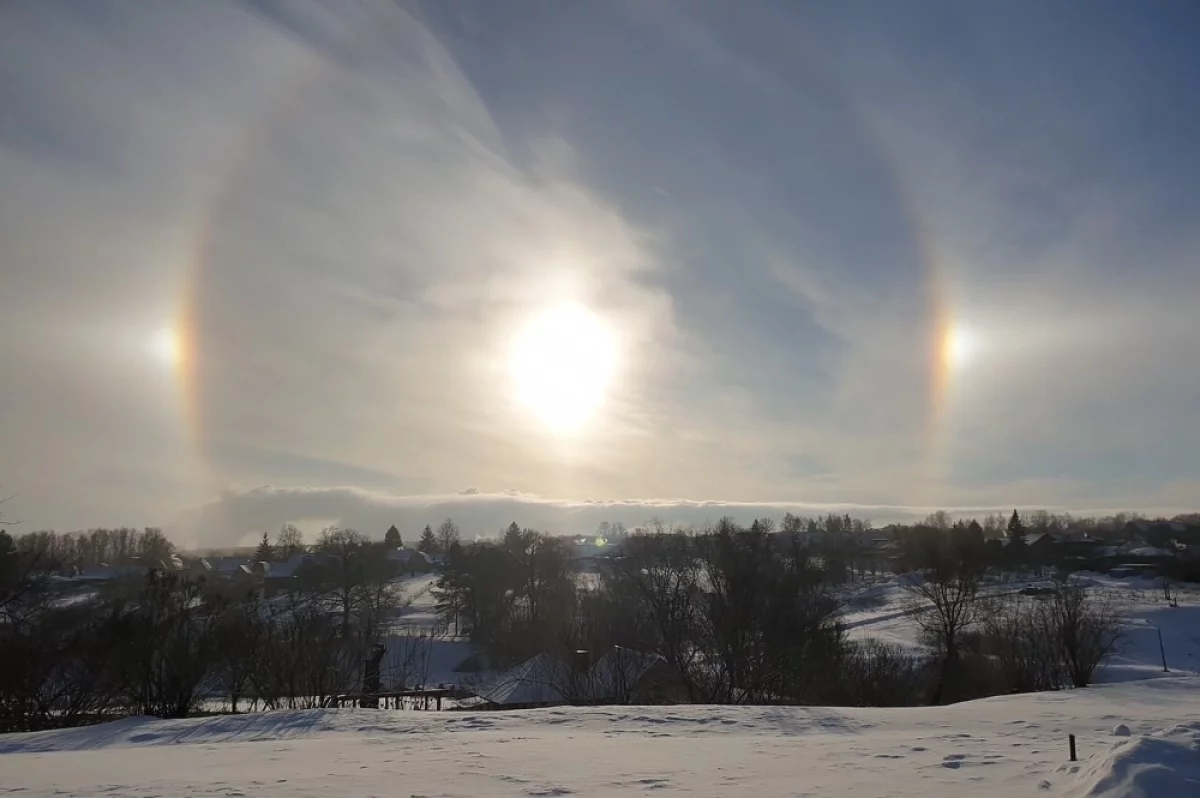На Москву и область надвигаются холода, 31 января столбик термометра может опуститься до −24°C. Зато благодаря морозу и высокой влажности в Подмосковье жители смогут увидеть три солнца, сообщила синоптик Татьяна Позднякова. Визуально будет казаться, что три светила выстроились в ряд на небе, но это не так. «Ложные солнца» — это оптическая иллюзия. Во время низких температур образуются мелкие кристаллики льда, через которые преломляется свет.