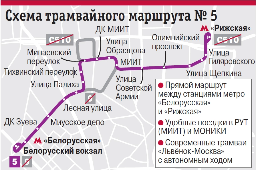 Трамвайные пути на Трифоновской улице интегрированы в общую систему, благодаря чему появилась возможность восстановить исторический маршрут № 5, который будет ходить от Белорусского вокзала до станции метро «Рижская». Этот маршрут должен облегчить и ускорить дорогу до дома для 500 тысяч москвичей.