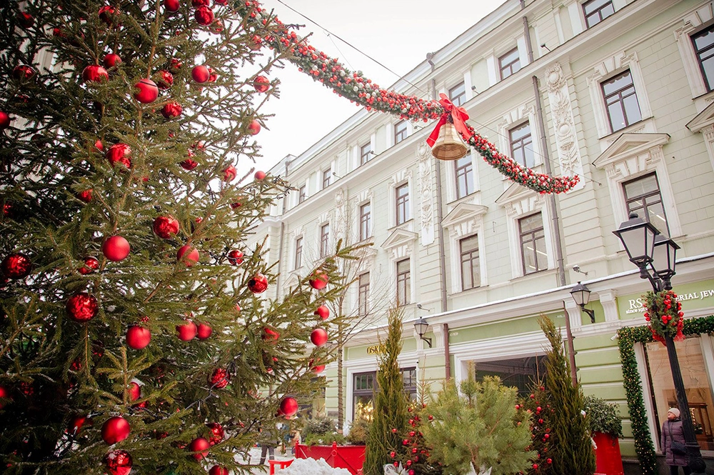 Столешников переулок получит более нежный образ — пастельную палитру с элементами «сладкого» декора. Переходы оттенков поддержат природные акценты: изумрудный вяз «пендула», серебристая листва османтуса и падуба. Русские и сербские ели украсят стеклянными шарами — от розовых до голубых. Полюбившиеся горожанам летние многоуровневые конструкции превратятся в праздничные «торты» из лапника. У входа разместят винтажный автомобиль с горкой подарков — новую фотозону сезона.