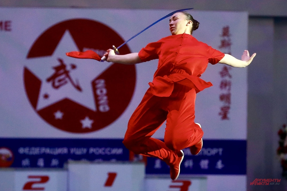 В таолу-ушу спортсмены замирают в сложнейших стойках, а через секунду взмывают в воздух, выполняя молниеносные прыжки. Каждое движение выверено до миллиметра: судьи внимательно следят за чистотой линий и силой ударов. Шум трибун затихает, когда атлеты демонстрируют владение мечом и копьем — свист оружия слышен даже в последних рядах.