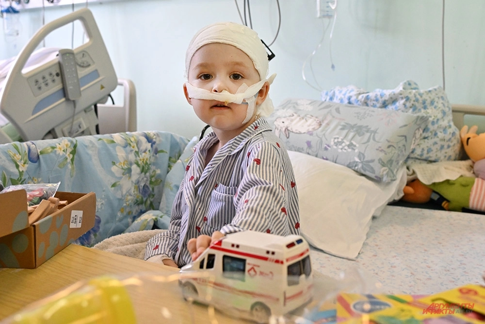 Алисе чуть больше двух лет. В палате она со своим папой Павлом. В московской клинике оказались после серьезного ДТП в Туле и операции в тульской больнице.