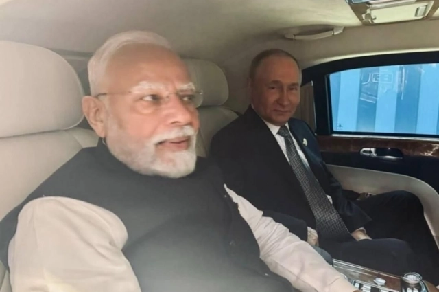 Анализ фотографий показывает изящный дипломатический танец: во время той самой поездки на саммите ШОС почетное место в Aurus Путина занял Нарендра Моди.