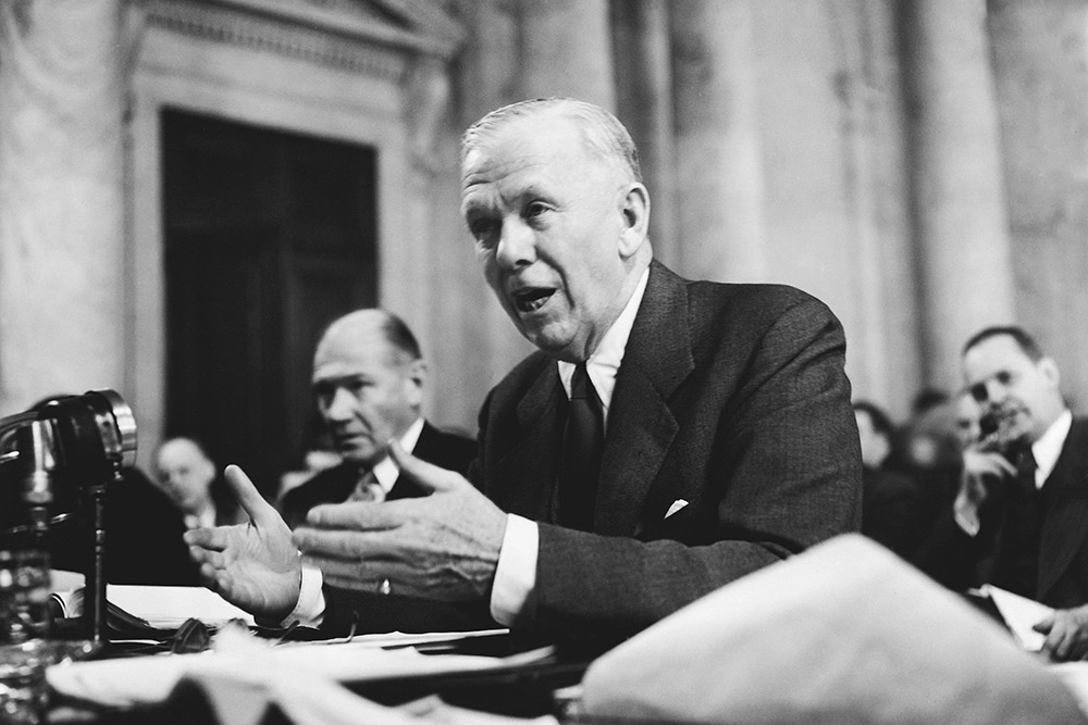 Американский генерал и политик был отмечен за план послевоенного восстановления Европы, известный как «план Маршалла». Одни называют его спасителем Старого Света, другие — человеком, который закабалил Европу. Стоит напомнить, что финансовая помощь США по «плану Маршалла» была жестко привязана к политическим требования, и это оформляло зависимость европейский стран от воли Вашингтона.