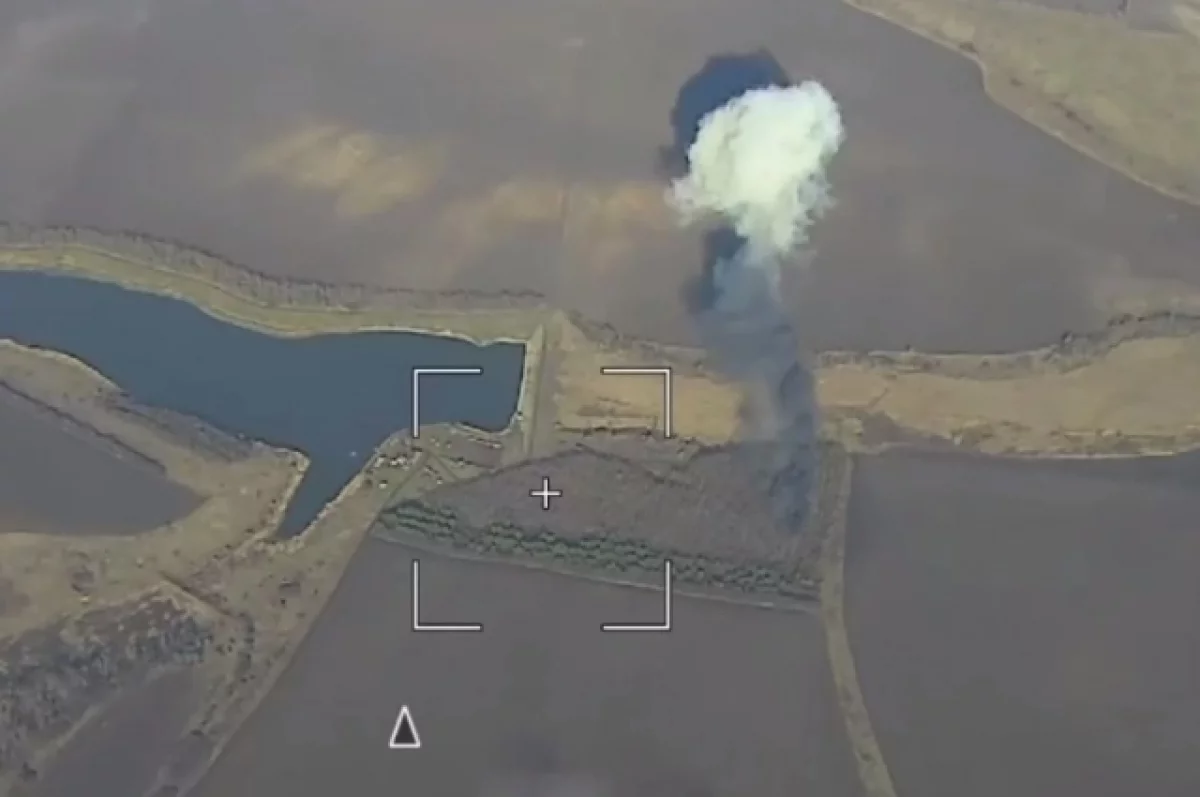 В Сети появились снятые с дрона кадры нанесения ракетного удара по местам скопления боевиков одного из подразделений ВСУ.