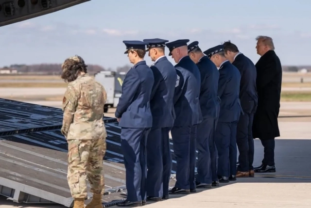 В сети появились фотографии с президентом США Дональдом Трампом и первыми гробами с американскими военными, привезенными с Ближнего Востока.