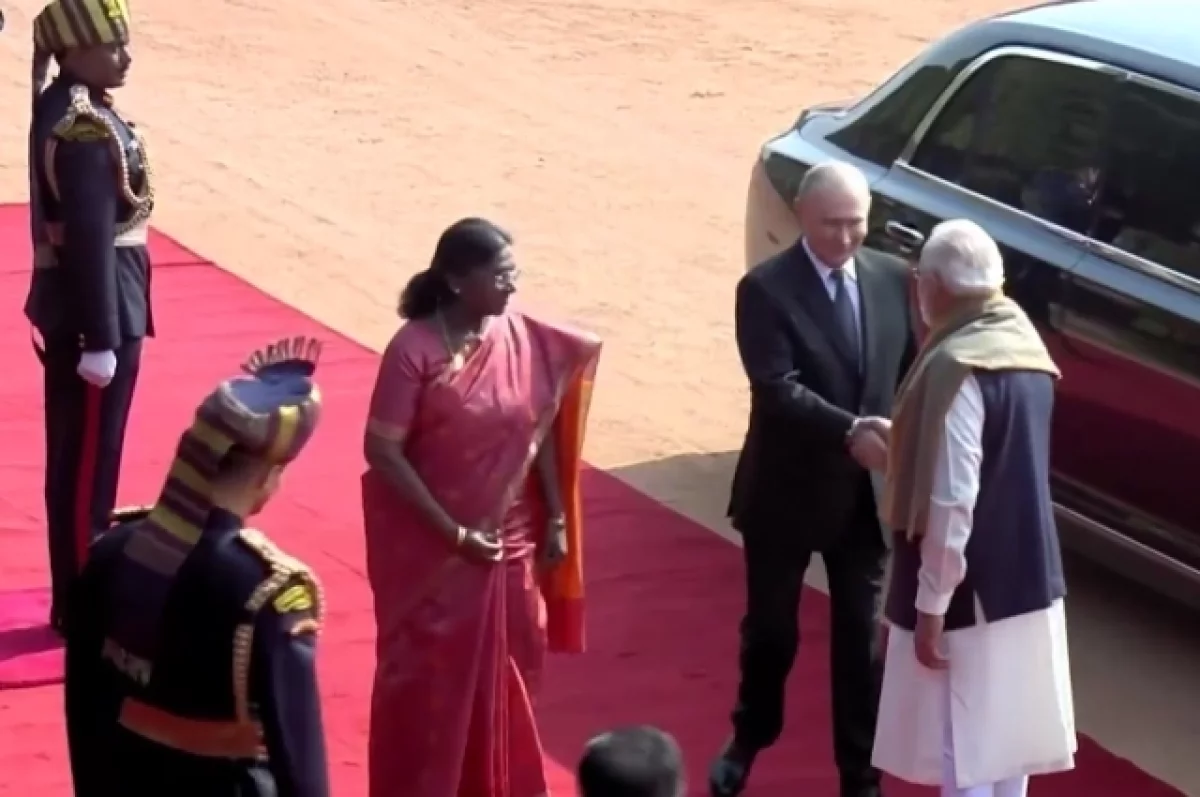 Российский лидер подъехал к резиденции, где его поприветствовали президент Индии Дроупади Мурму и премьер-министр Нарендра Моди. Во время церемонии оркестр исполнил гимн России.