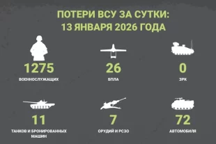 Минобороны РФ опубликовало данные о потерях ВСУ за 12 января 2026 года. Противник не досчитался 1265 военнослужащих.