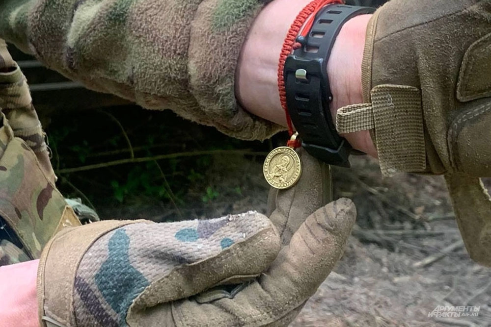 «Мы теснили вэсэушников, был плотный огневой контакт, и чуть-чуть меня зацепило, слава Богу, повезло. А вообще удача в нашей профессии — важная штука. Я, честно признаюсь, верю в талисманы. Свой первый нашел совершенно случайно в подвале одного из домов в Артёмовске. С того момента меня бережёт блаженная Ксения Петербуржская», — Макар продемонстрировал небольшой металлический образок, закрепленный на запястье.
