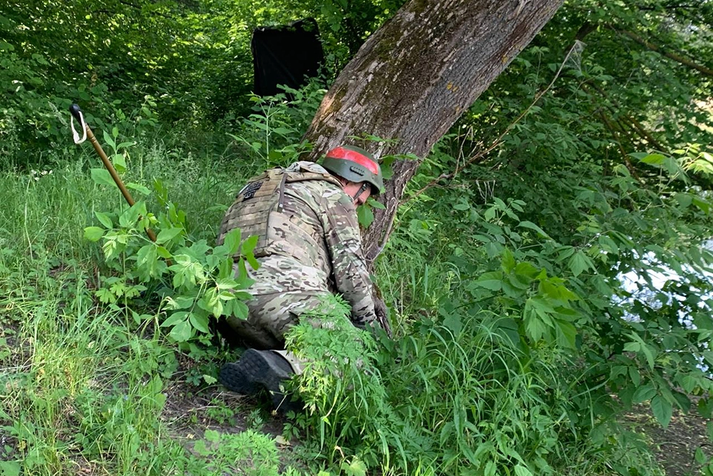 «Ещё весной здесь шли серьёзные бои, и через эту лесополку, насколько я знаю, украинцы отступали, — рассказывает Афганец. — А это значит — просто так ходить здесь смертельно опасно. Теперь наша задача — собрать все то, что понаставил враг. Тут ведь совсем рядом поселок и рано или поздно его восстановят, туда вернутся мирные жители. Поэтому чтобы первый же поход местных в этот лес по грибы или по ягоды не закончился бедой, мы с Шахтером и с другими парнями всё досконально проверяем. Спешка в нашем деле — не союзник, тут всё надо делать наверняка, с чувством, с толком, с расстановкой».