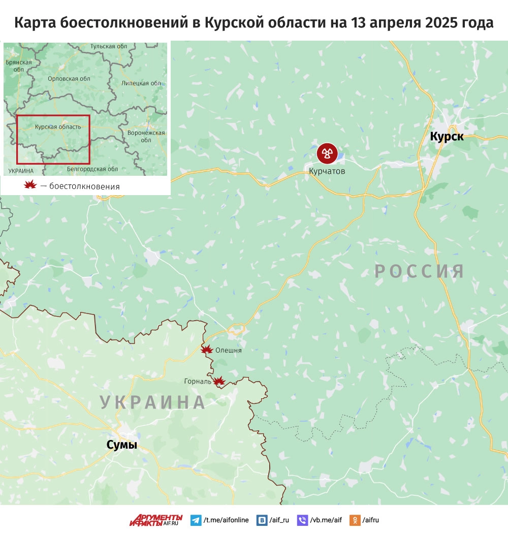 Карта боестолкновений в Курской области на 13 апреля 2025 года