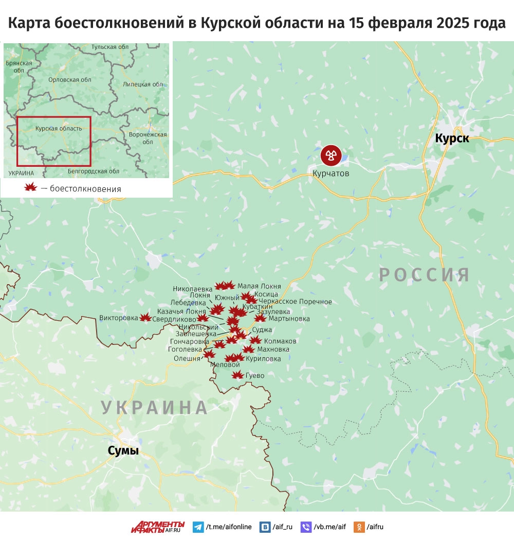 Карта боестолкновений в Курской области на 15 февраля 2025 года