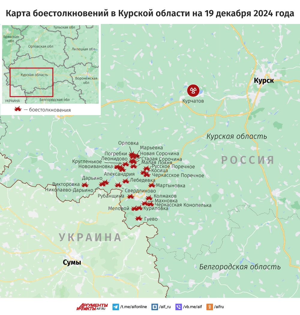 Карта боестолкновений в Курской области на 19 декабря 2024 года