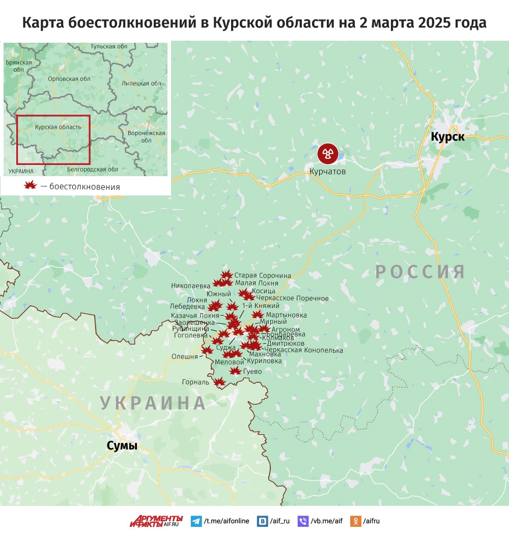 Карта боестолкновений в Курской области на 2 марта