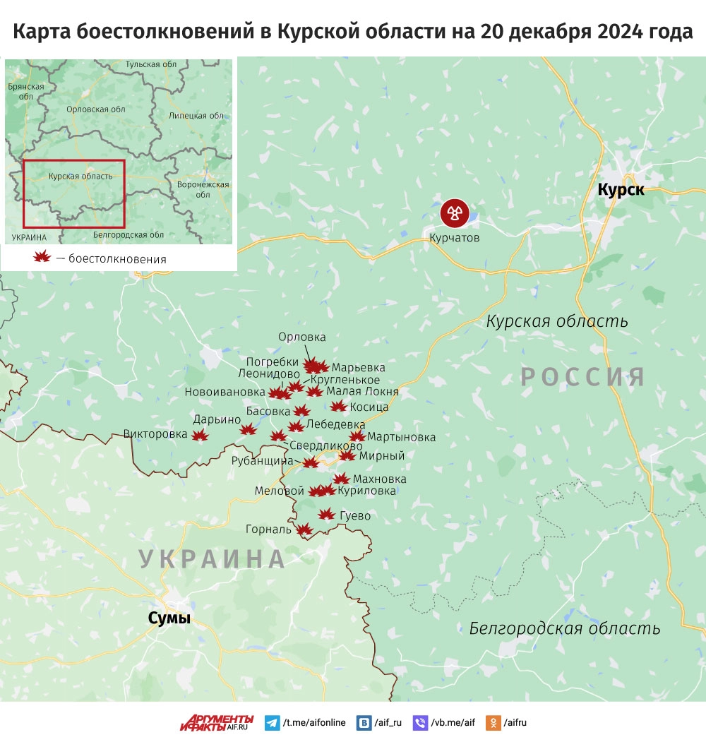 Карта боестолкновений в Курской области на 20 декабря 2024 года