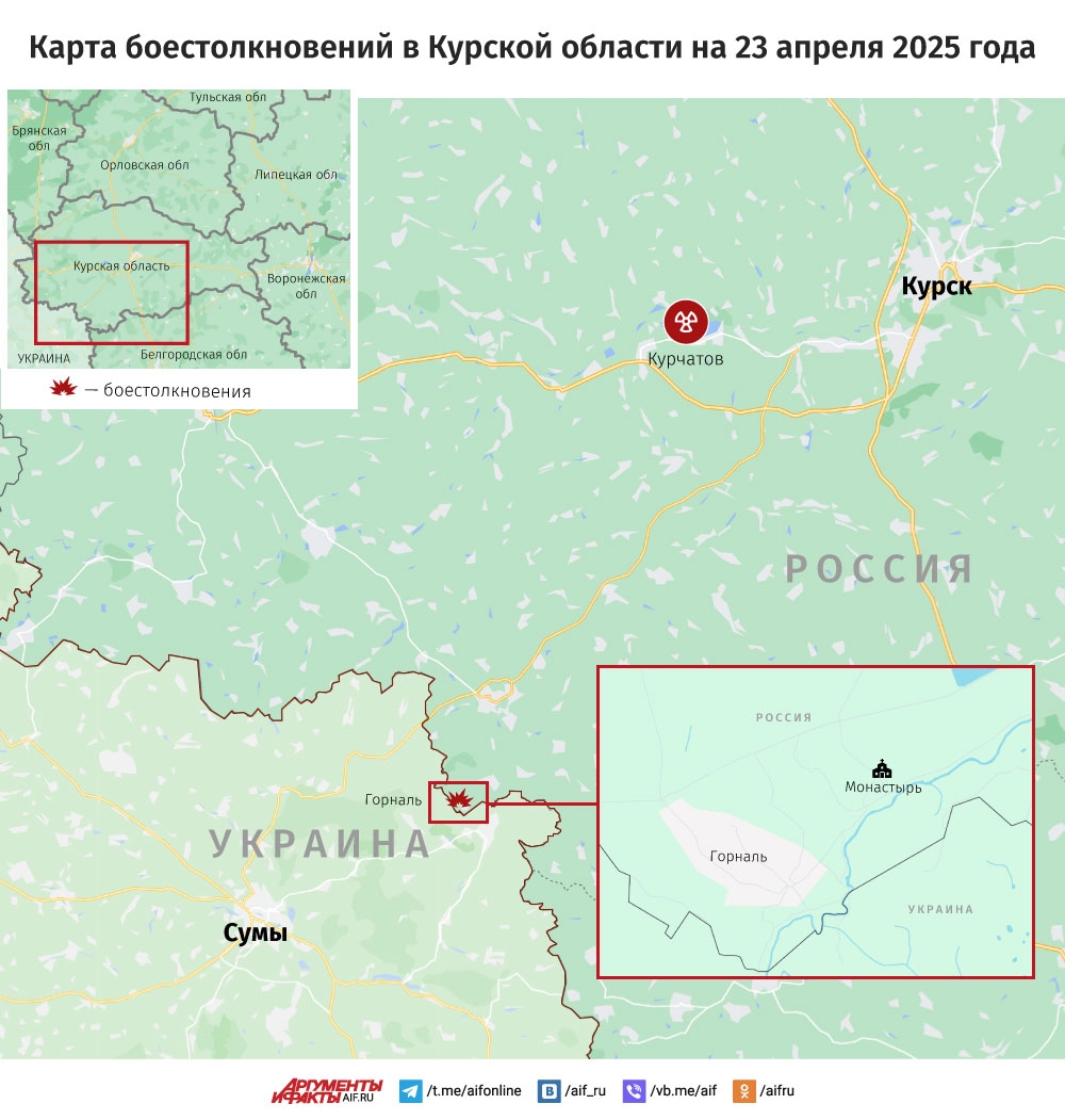 Карта боестолкновений в Курской области на 23 апреля 2025 года