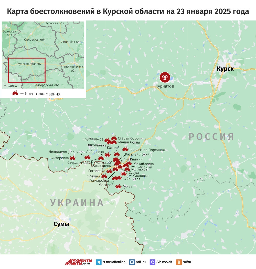 Карта боестолкновений в Курской области на 23 января 2025 года