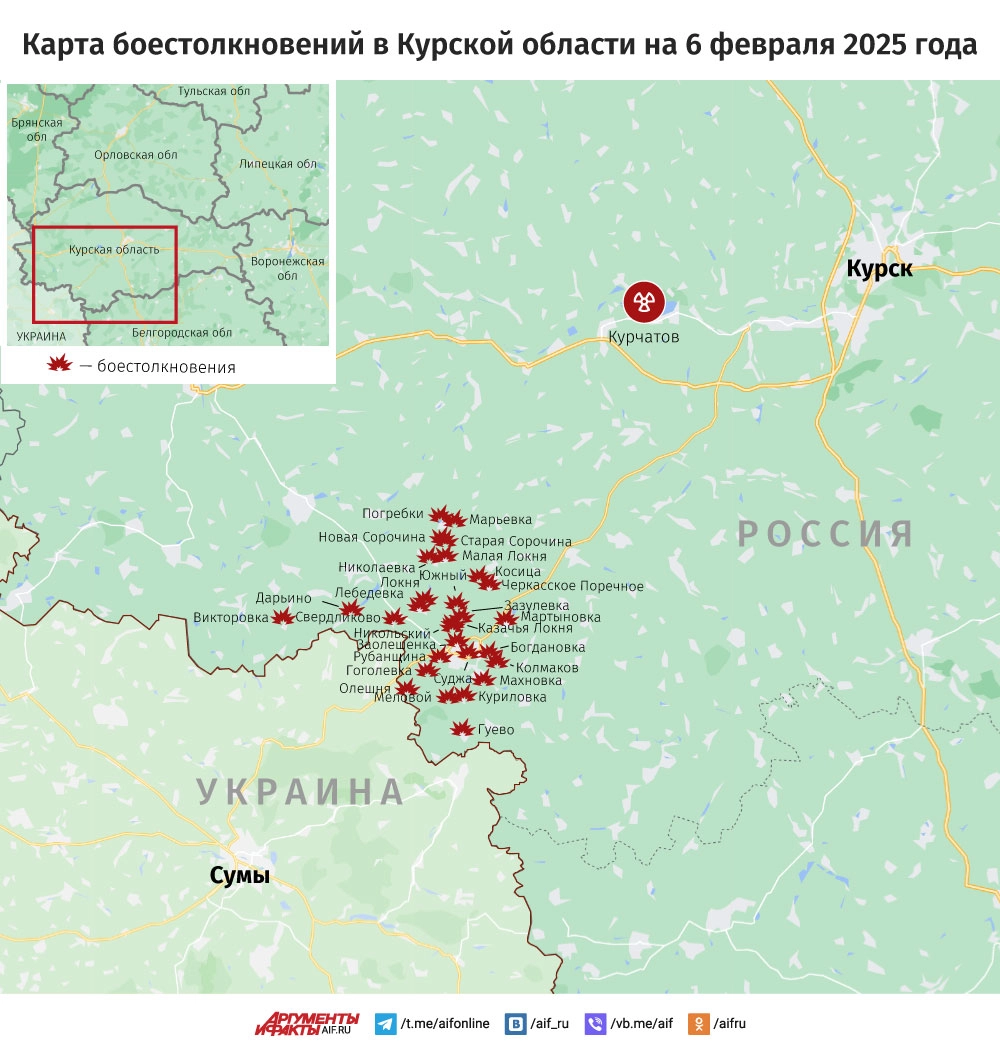 Карта боестолкновений в Курской области на 6 февраля 2025 года