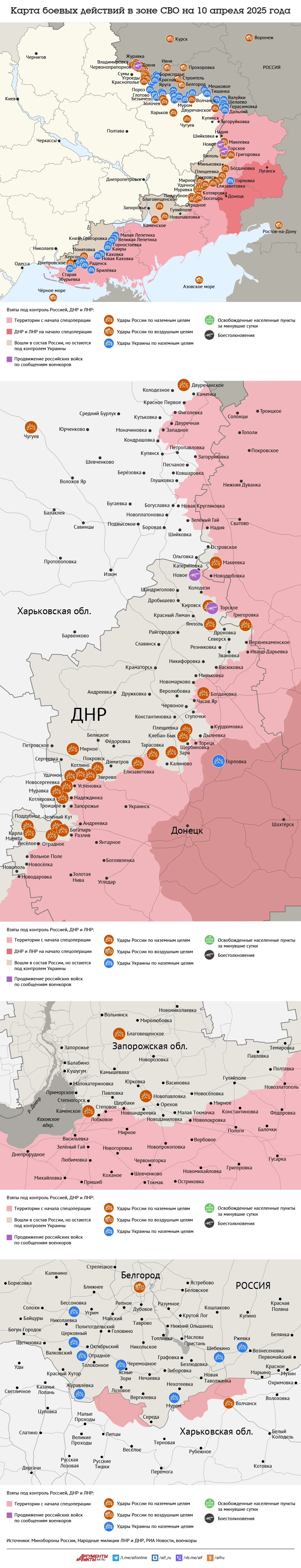 Карта боевых действий в зоне СВО на 10 апреля 2025 года