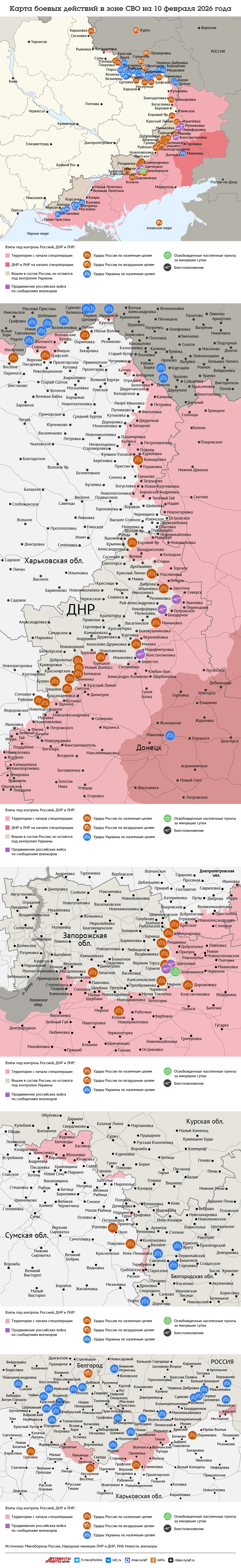 Карта боевых действий в зоне СВО на 10 февраля 2026 года