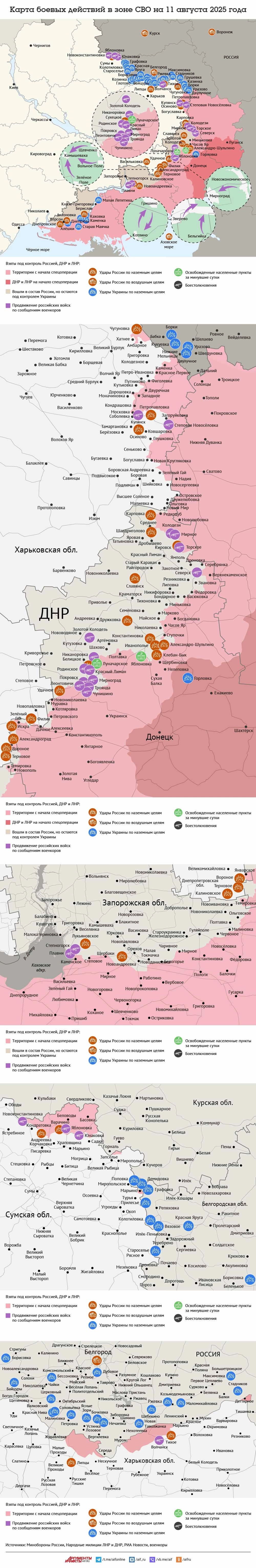 Карта боевых действий в зоне СВО на 11 августа 2025 года