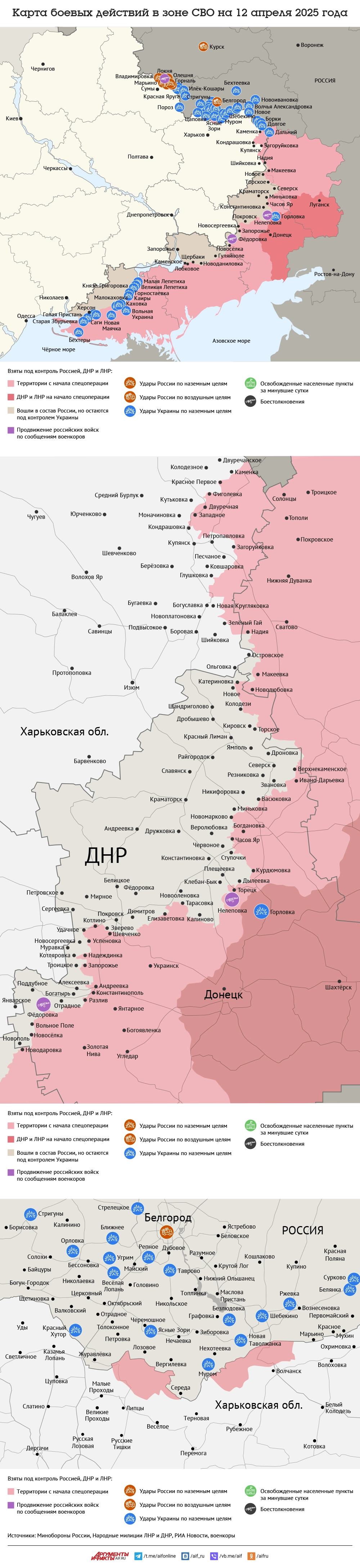 Карта боевых действий в зоне СВО на 12 апреля 2025 года