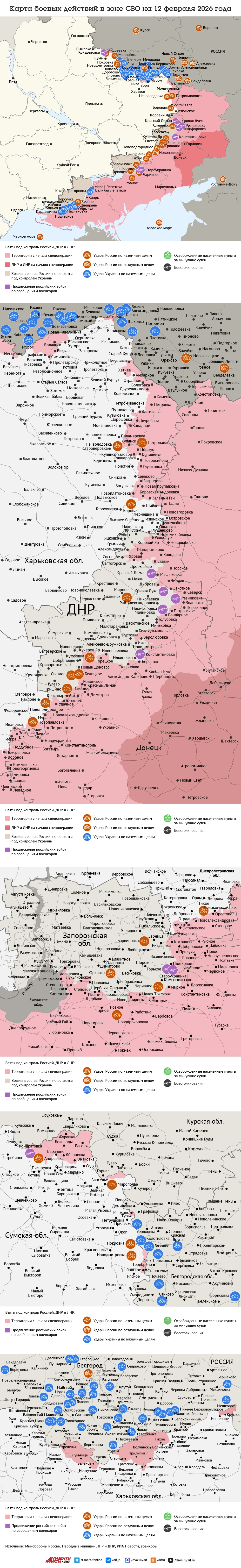 Карта боевых действий в зоне СВО на 12 февраля 2026 года