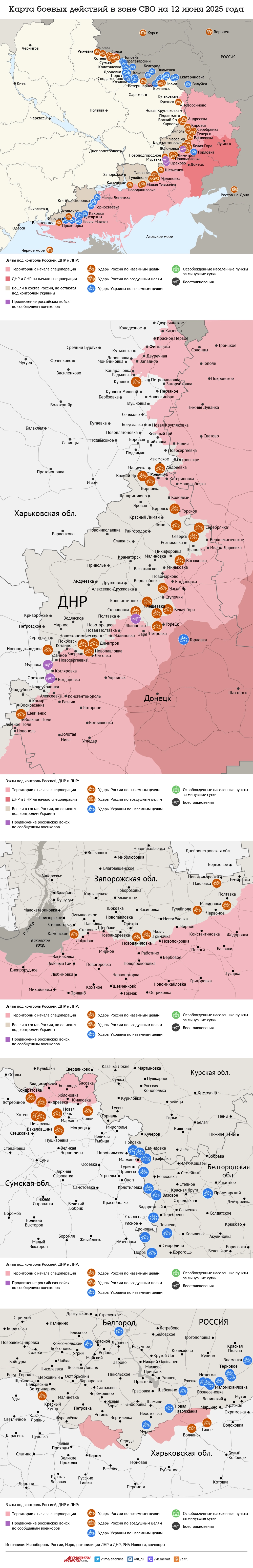 Карта боевых действий в зоне СВО на 12 июня 2025 года