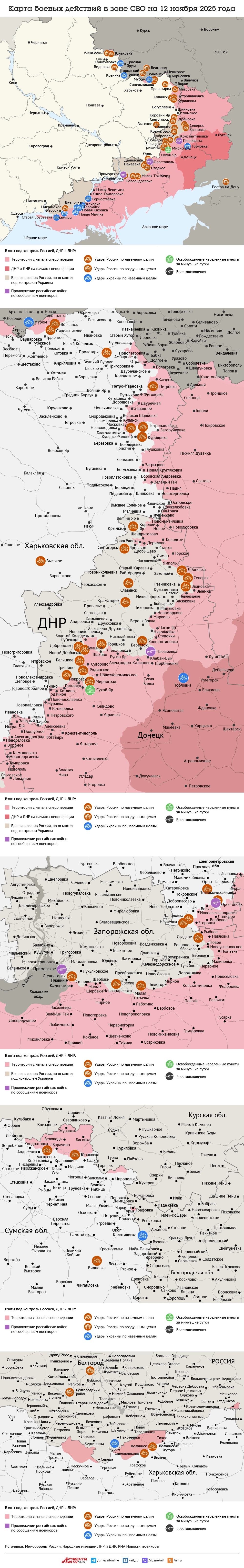 Карта боевых действий в зоне СВО на 12 ноября 2025 года