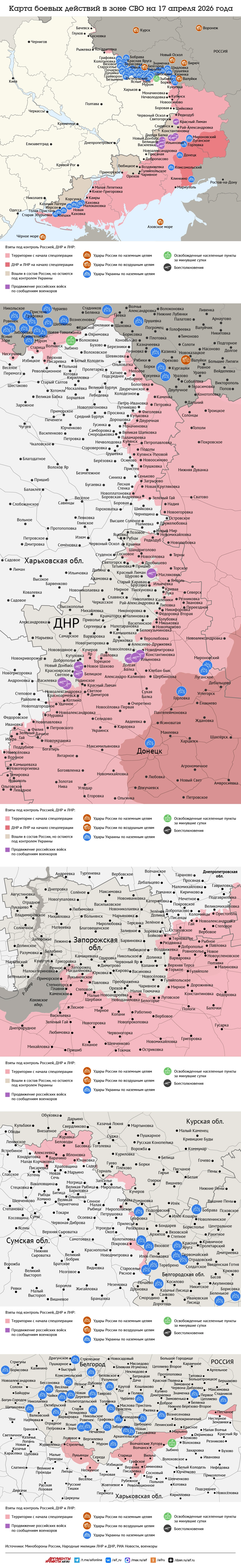 Карта боевых действий в зоне СВО на 17 апреля 2026 года