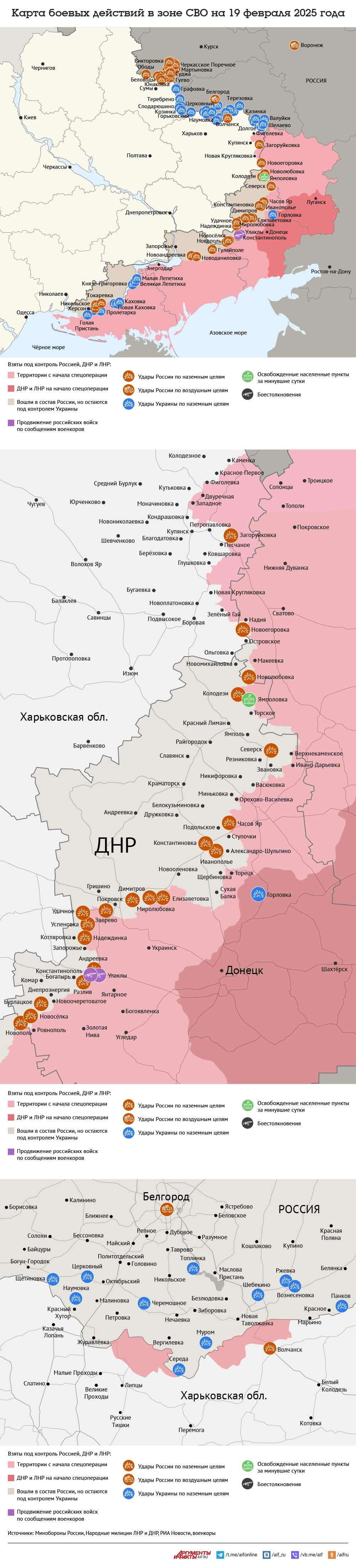 Карта боевых действий в зоне СВО на 19 февраля 2025 года