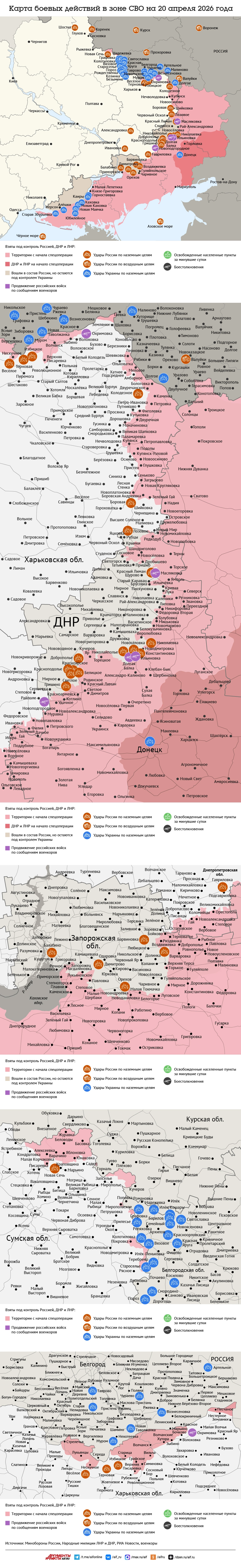 Карта боевых действий в зоне СВО на 20 апреля 2026 года