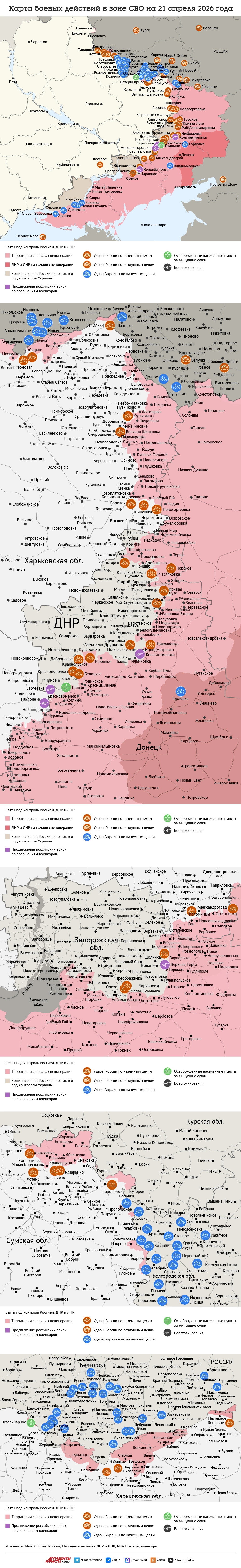 Карта боевых действий в зоне СВО на 21 апреля 2026 года