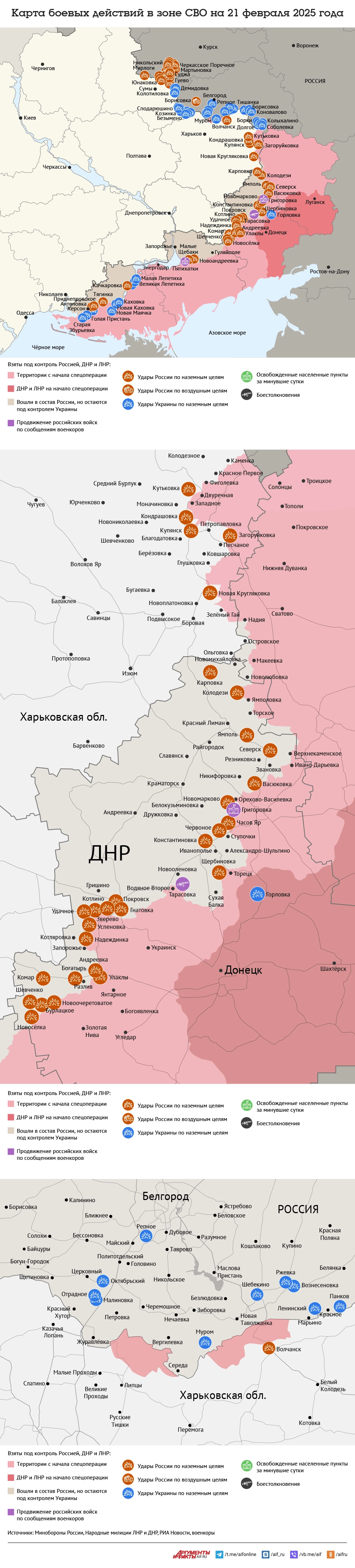 Карта боевых действий в зоне СВО на 21 февраля 2025 года