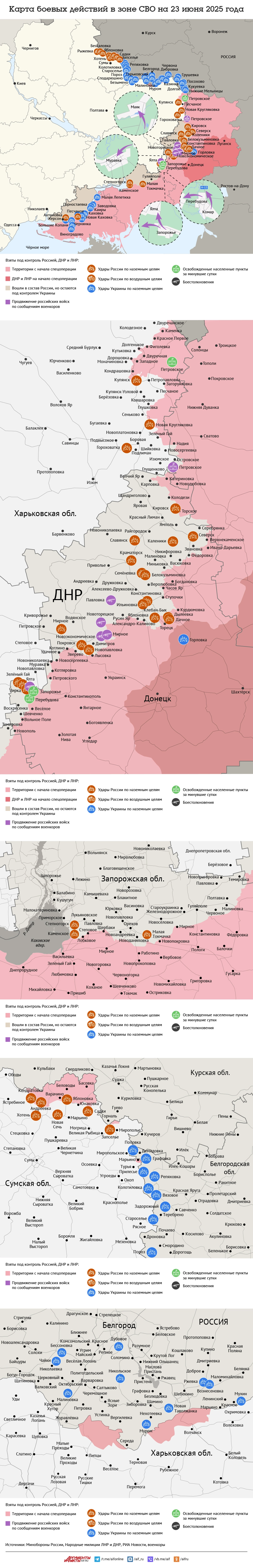 Карта боевых действий в зоне СВО на 23 июня 2025 года