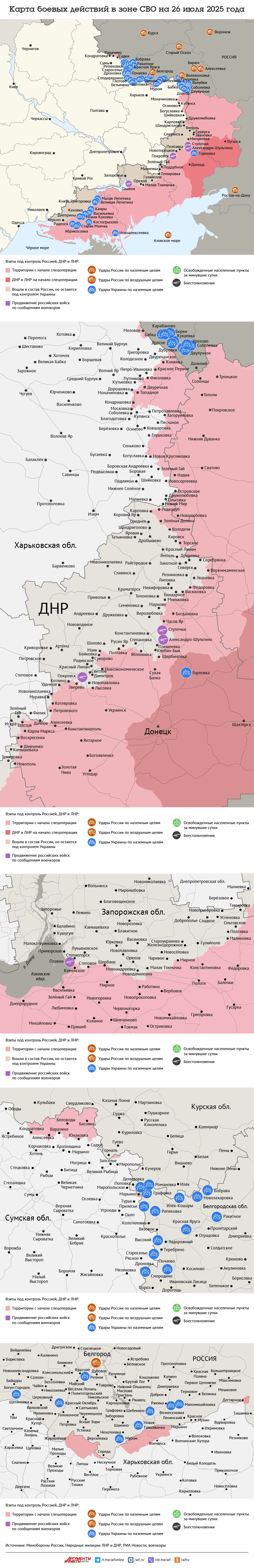 Карта боевых действий в зоне СВО на 26 июля 2025 года