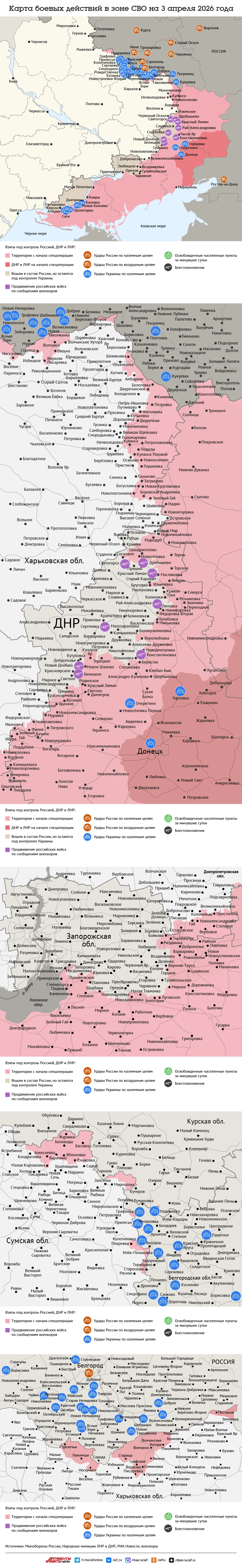 Карта боевых действий в зоне СВО на 3 апреля 2026 года