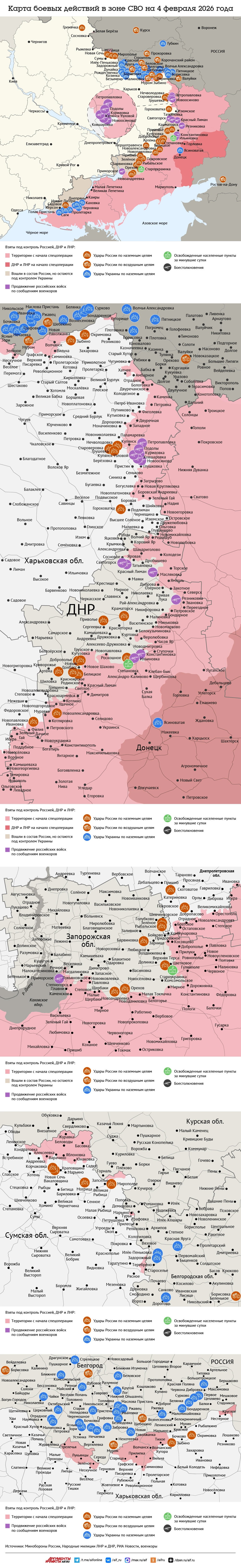 Карта боевых действий в зоне СВО на 4 февраля 2026 года