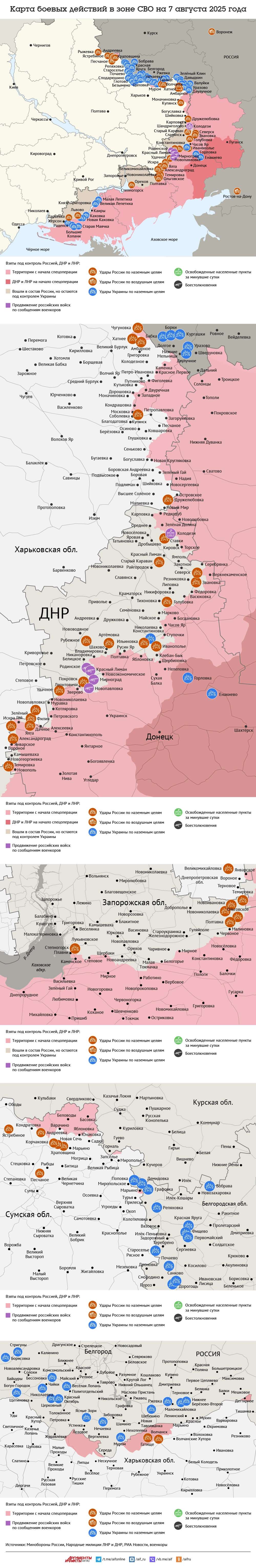 Карта боевых действий в зоне СВО на 7 августа 2025 года