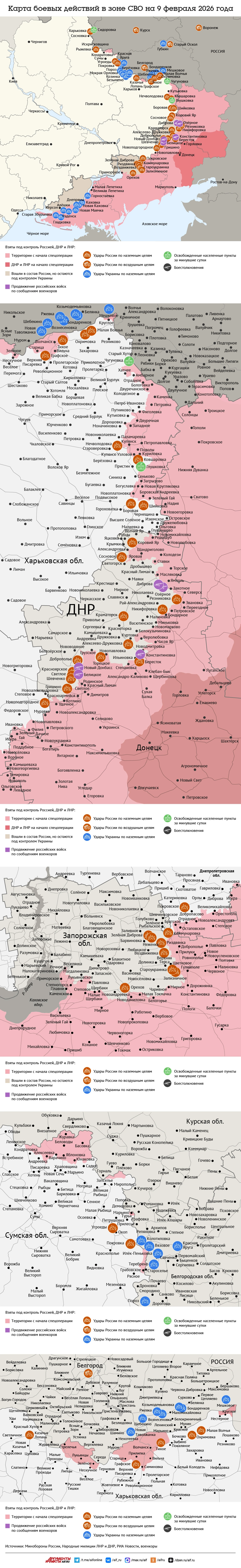 Карта боевых действий в зоне СВО на 9 февраля 2026 года