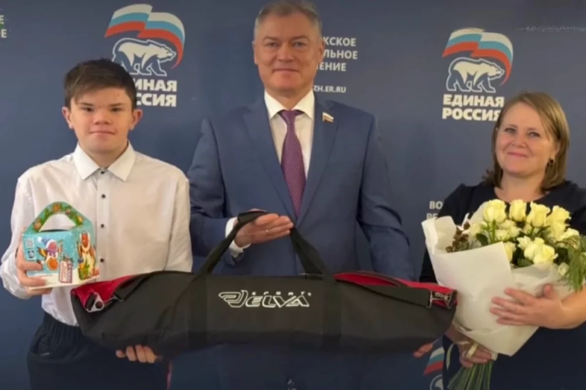 Желание Матвея семи лет из села Морозовка ЛНР, интересующегося лыжами, тоже осуществилось. Мальчику подарили спортивный комплект. Его передал секретарь Луганского реготделения партии, глава народного совета ЛНР Денис Мирошниченко. Ребенок с мамой посетили мероприятие на главной площади Луганска, которое было проведено при содействии муниципалитета.
