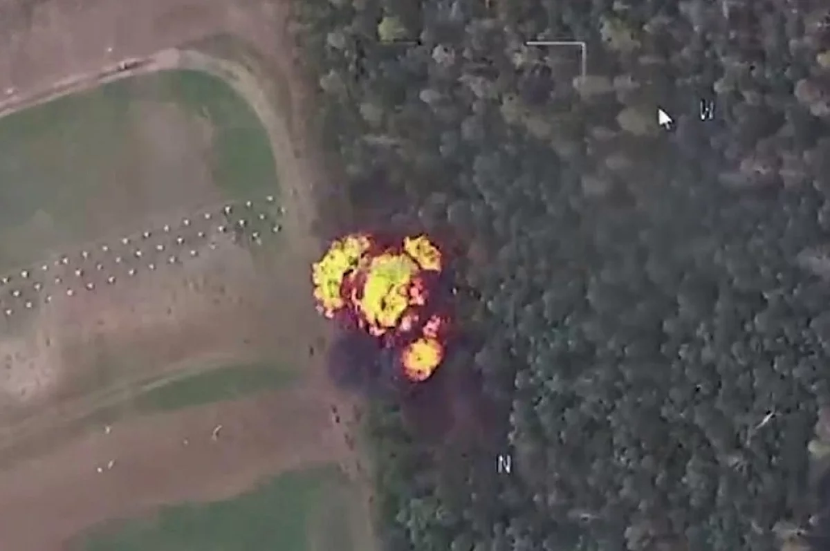 Атака по цели в районе села Владимировка в Черниговской области проводилась комбинированным методом. Сначала по цели прилетела ракета комплекса «Искандер-М», а следом за ней, чтобы окончательно добить цель, РСЗО разметала «Герань-2». На записи, приложенной к посту, заметно, что после того, как разведчики замечают установку, они проводят доразведку и передают данные о цели. После идет атака. В результате сгорает и «Хаймарс», и окружающие его автомобили сопровождения. Потери врага при этом достигают взвода пехоты.