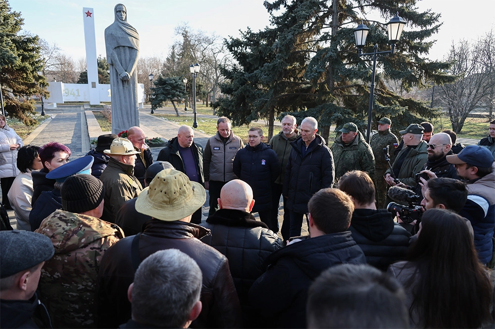 В Геническ Владимир Якушев приехал накануне Дня памяти воинов-интернационалистов. В преддверии памятной даты он вместе с ветеранами Афганской войны, участниками специальной военной операции, Херсонским областным отделением «Боевого Братства» и молодогвардейцами возложил цветы к расположенному в сквере монументу «Скорбящая мать».
