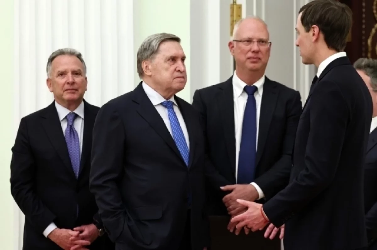 Помощник президента РФ Юрий Ушаков и спецпосланник американского лидера Стив Уиткофф обменялись шутками во время ожидания делегаций перед началом встречи с президентом РФ Владимиром Путиным по украинскому вопросу в Кремле.