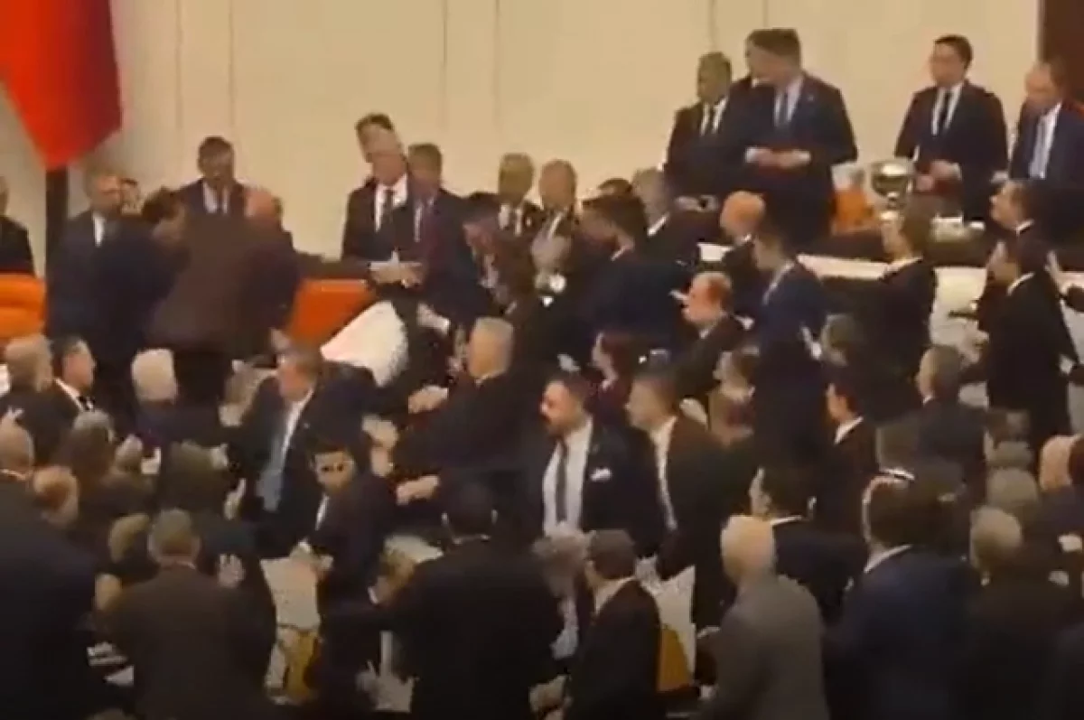 В парламенте Турции (Великое национальное собрание) произошла драка между депутатами от правящей партии и от оппозиции. В сети появились соответствующие кадры.