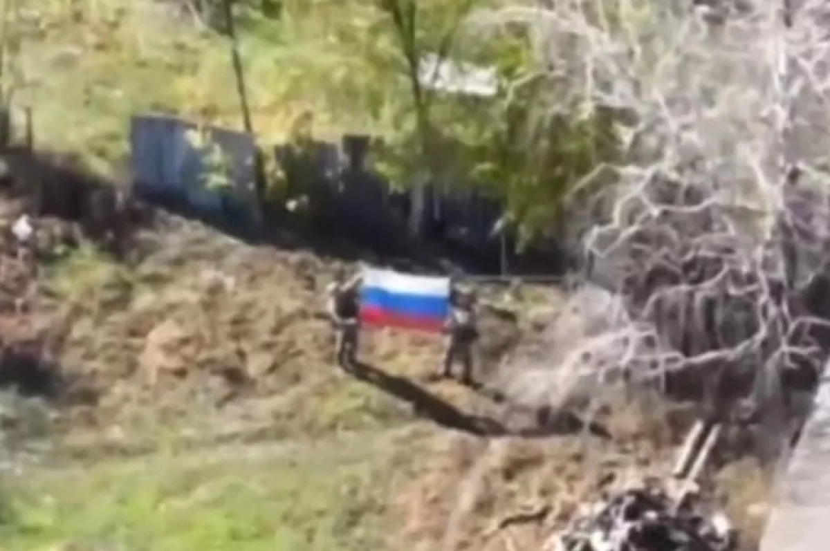 Канал опубликовал кадры с российским флагом, развернутым бойцами в освобожденном селе.