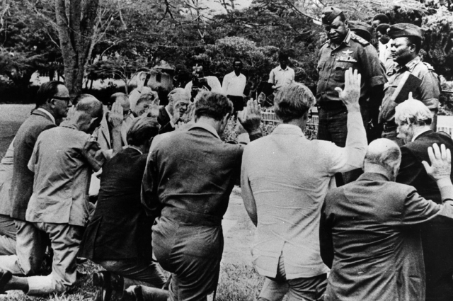 ...Главком вооружённых сил Уганды, генерал Иди Амин захватил власть 25 января 1971 года, когда президент Оботе находился с визитом в Сингапуре. Новый властитель сразу провозгласил политику «Уганда для угандийцев» и через год изгнал из страны 60 000 жителей азиатского происхождения — в основном индийцев, а также пакистанцев и китайцев. Магазины, фермы и квартиры «врагов» были переданы коренным гражданам. Затем, настала очередь европейцев — выслали британских фермеров, забрав в собственность их поместья. Известная нам система «отнять и поделить» угандийцам весьма нравится, они считают такое решение Амина самым удачным.