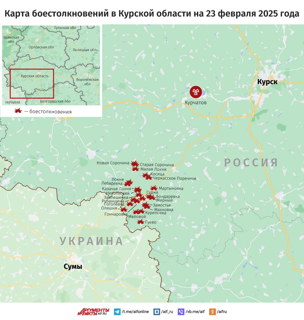 Карта боестолкновений в Курской области на 23 февраля 2025 года