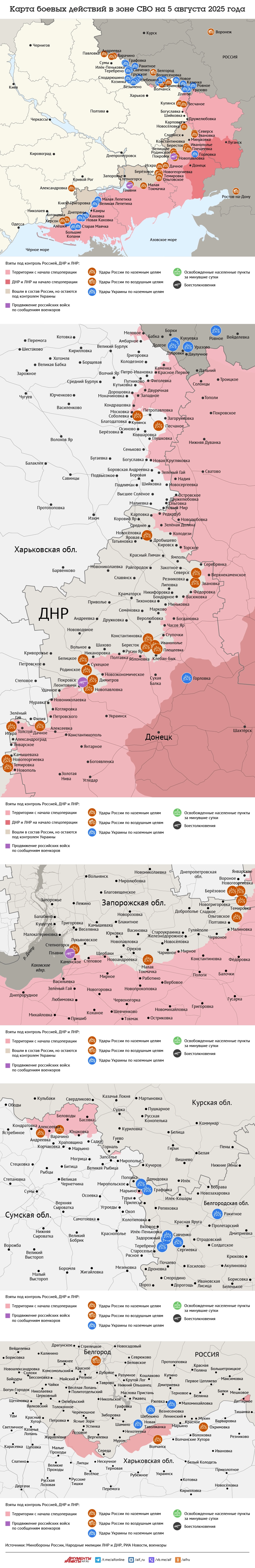 Карта боевых действий в зоне СВО на 5 августа 2025 года