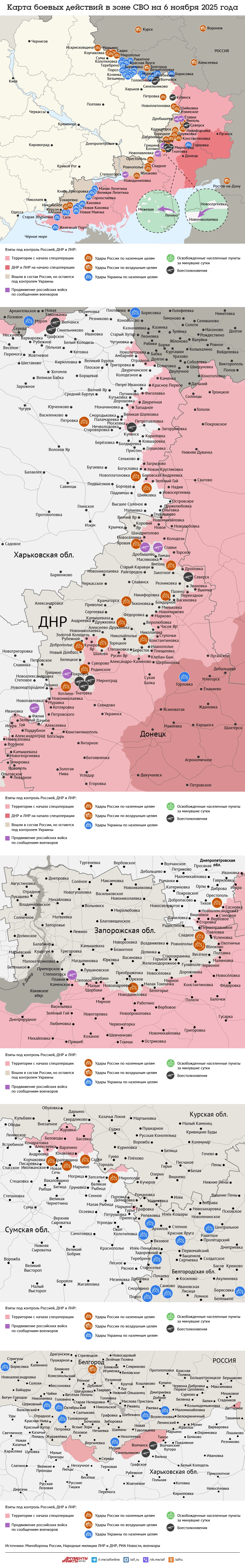 Карта боевых действий в зоне СВО на 6 ноября 2025 года